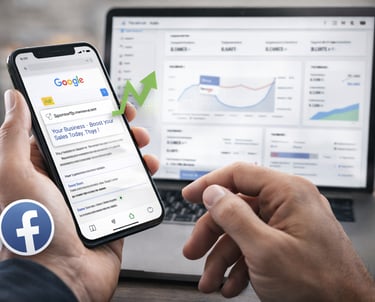 אנחנו מנהלים קמפיינים חכמים בפלטפורמות של Google והרשתות החברתיות, עם מיקוד בתוצאות אמיתיות ולא רק בקליקים.