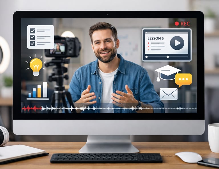 אפיון הקורס, בניית התוכן, בחירת פלטפורמה מתאימה, חיבור לתהליכי שיווק ואוטומציה, והקמה טכנולוגית מלאה.